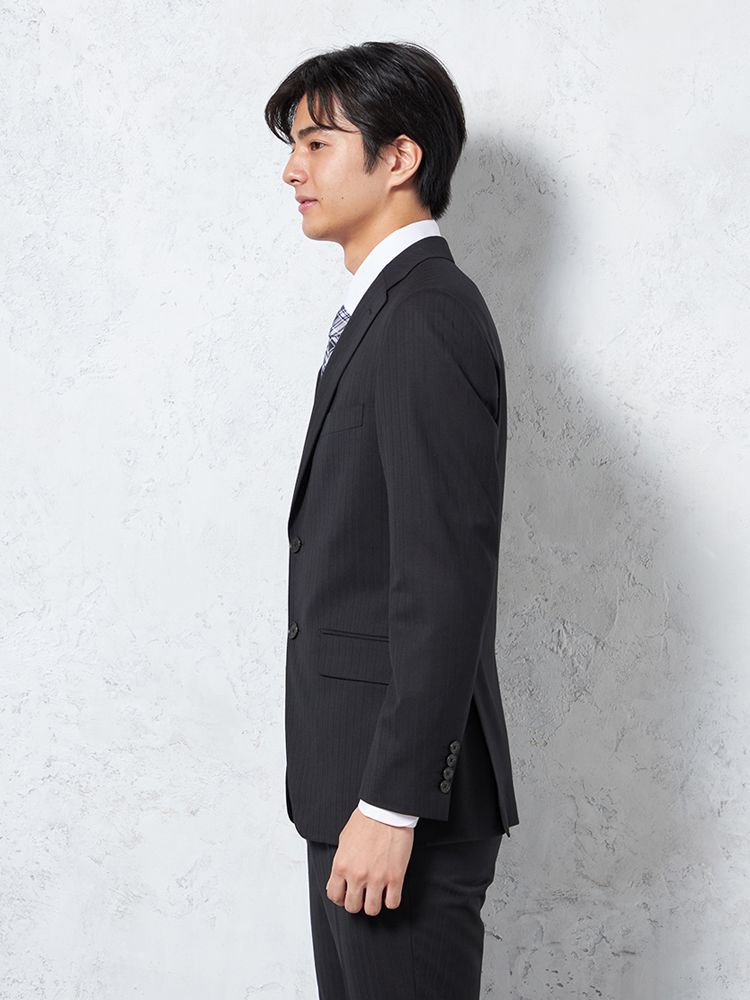 【即納】スーツ2つボタン【WEB限定】4WAYストレッチシャドウストライプブラック