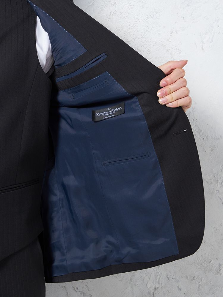 【即納】【WEB限定】スーツ2つボタンブラックシャドウストライプ上下ウォッシャブル3シーズン対応