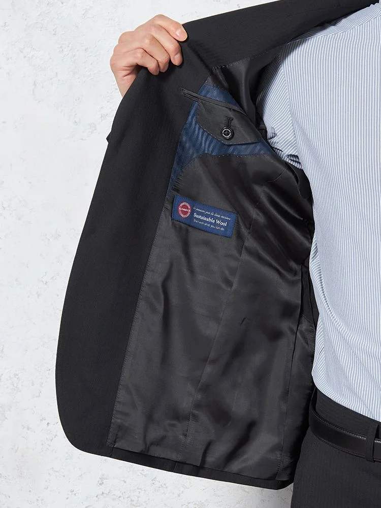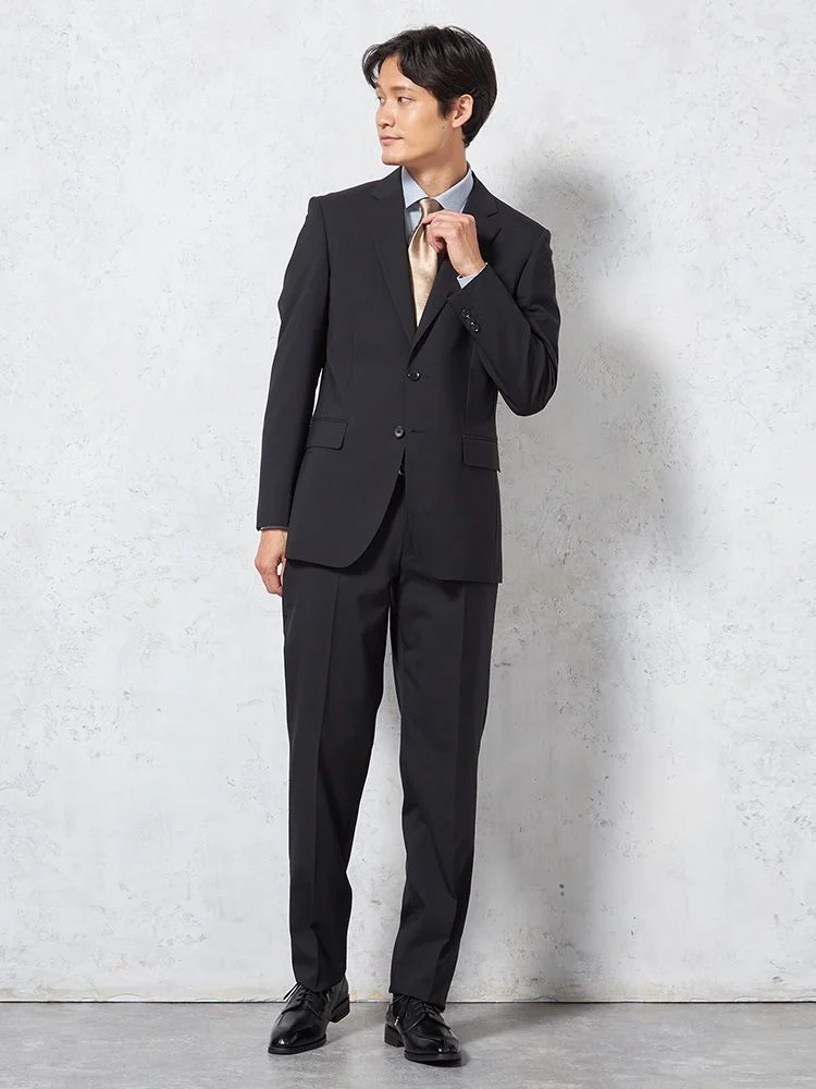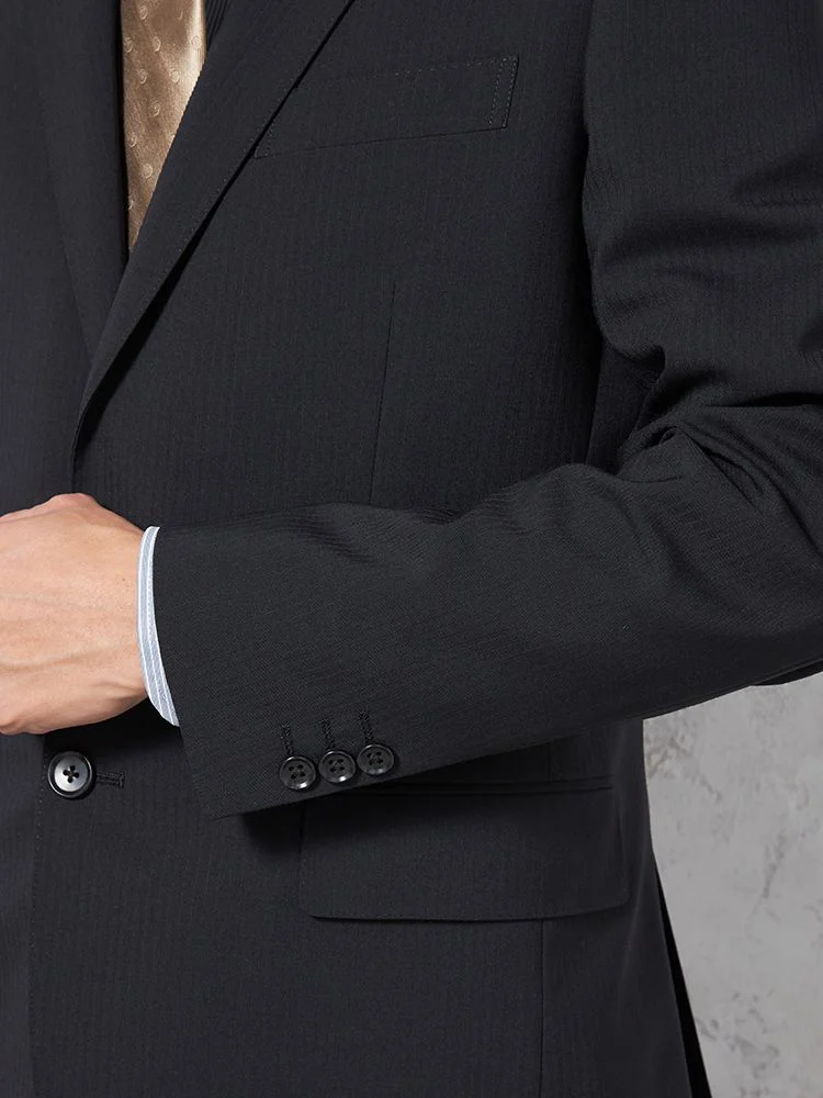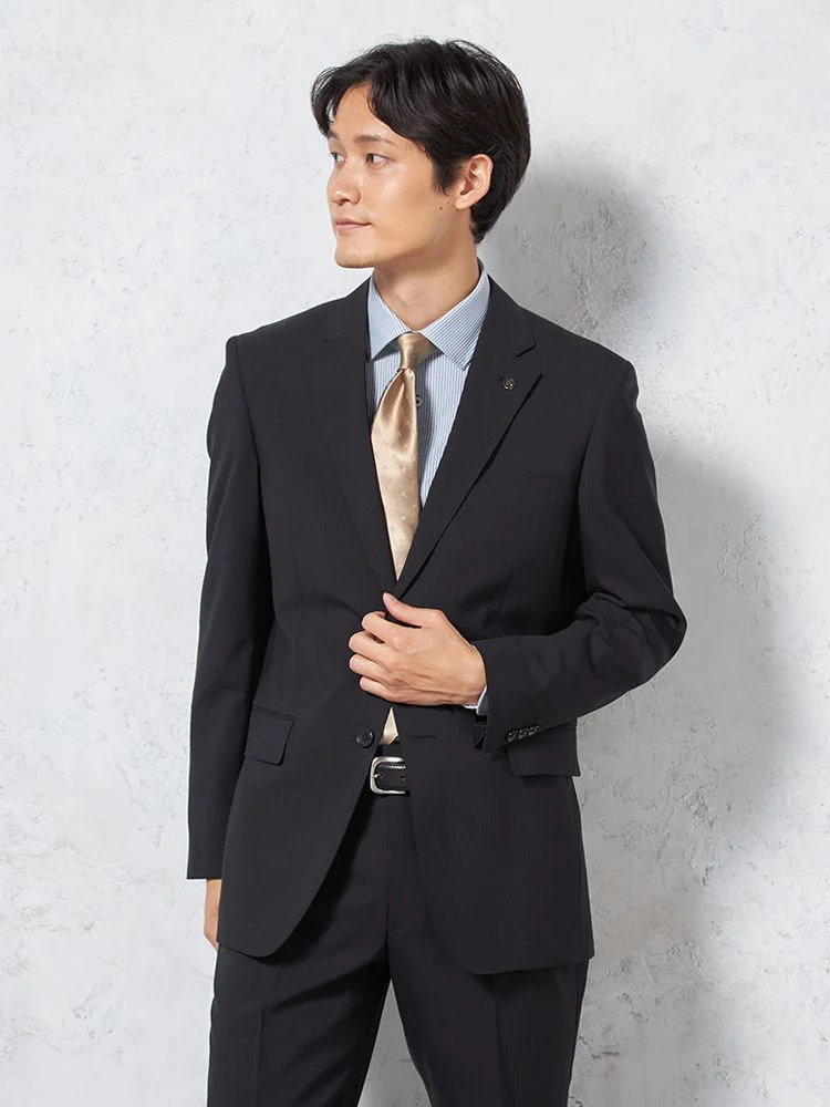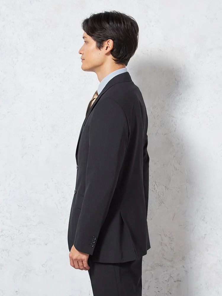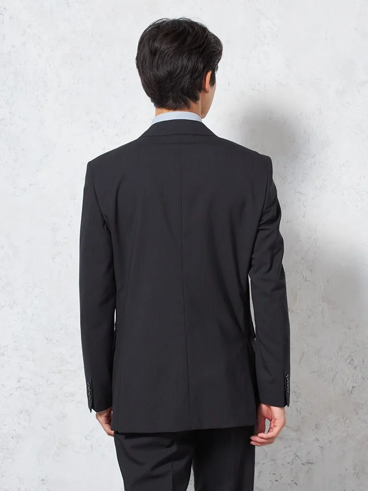 【即納】【WEB限定】スーツ2つボタンブラックシャドウストライプ上下ウォッシャブル3シーズン対応