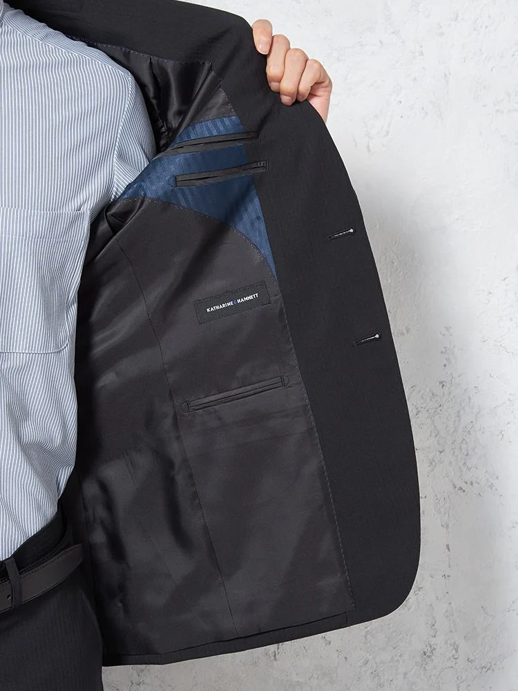 【KATHARINEEHAMNETT-キャサリン・イー・ハムネット-】スーツ2つボタン上下ウォッシャブルサスティナブルウール混ブラック織柄