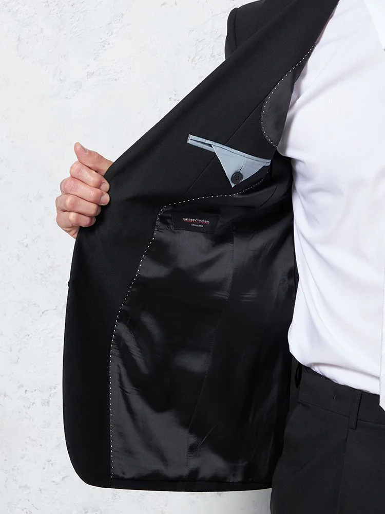 [礼服]【ウエストアジャスター仕様】フォーマル2つボタンウール混黒無地STOVEL&MASON通年礼服【定番】