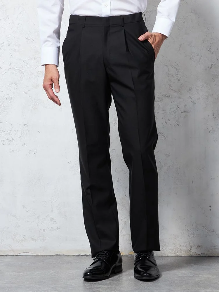 [礼服]【ウエストアジャスター仕様】2つボタン サマーフォーマル ワンタック 黒無地 カンサイ・ヤマモト 春夏 礼服【定番】
