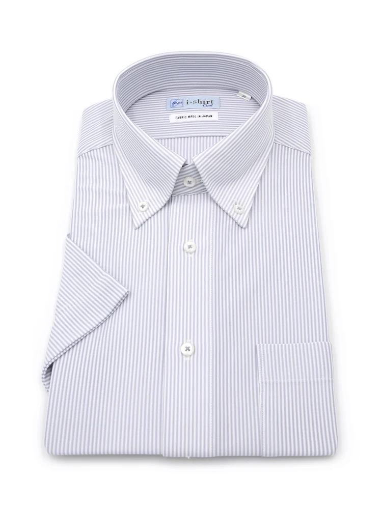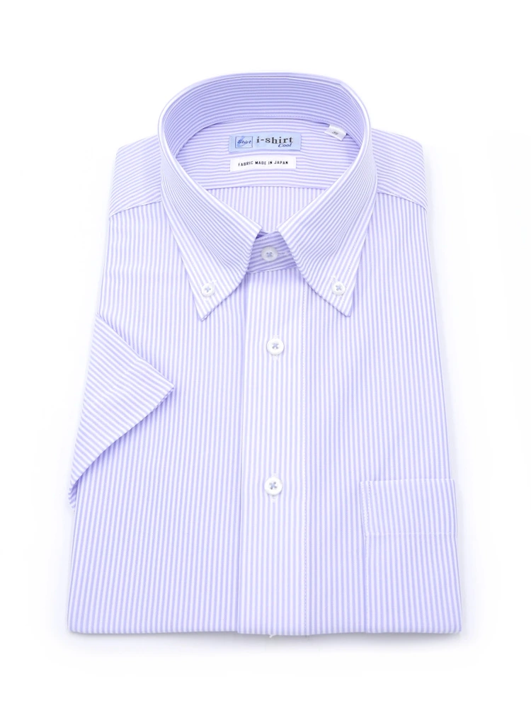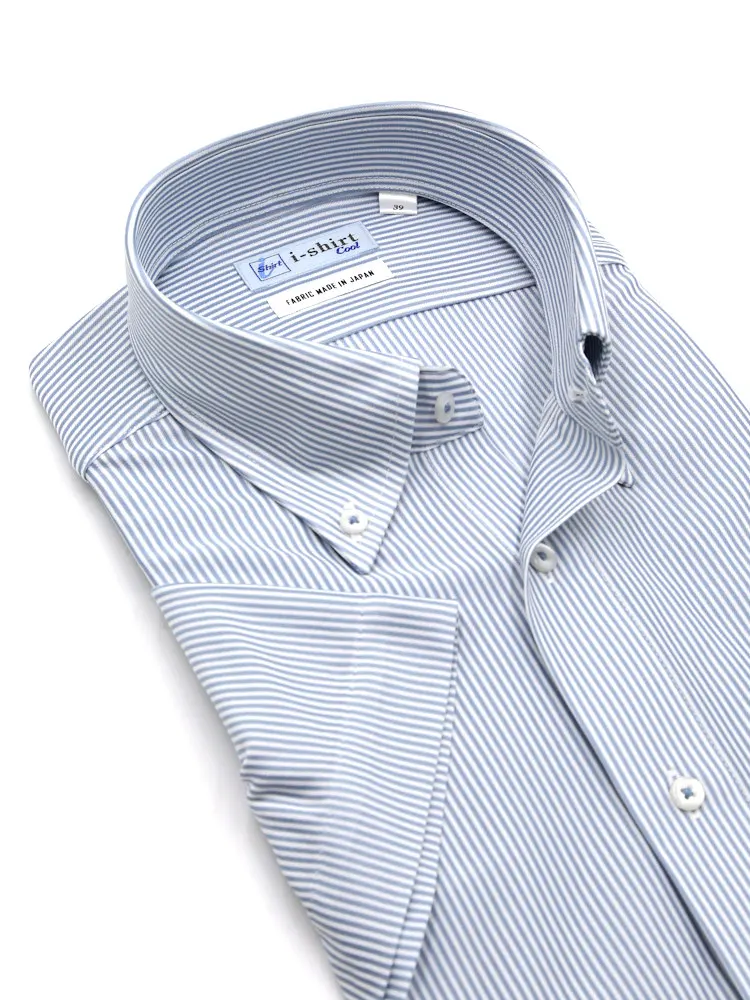 【完全ノーアイロン】半袖アイシャツボタンダウン【アイスライブ生地使用】吸湿冷感シャドーストライプi-shirtワイシャツ春夏