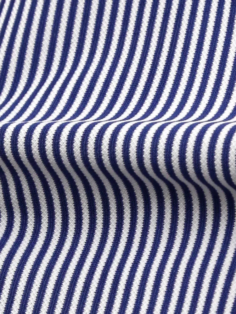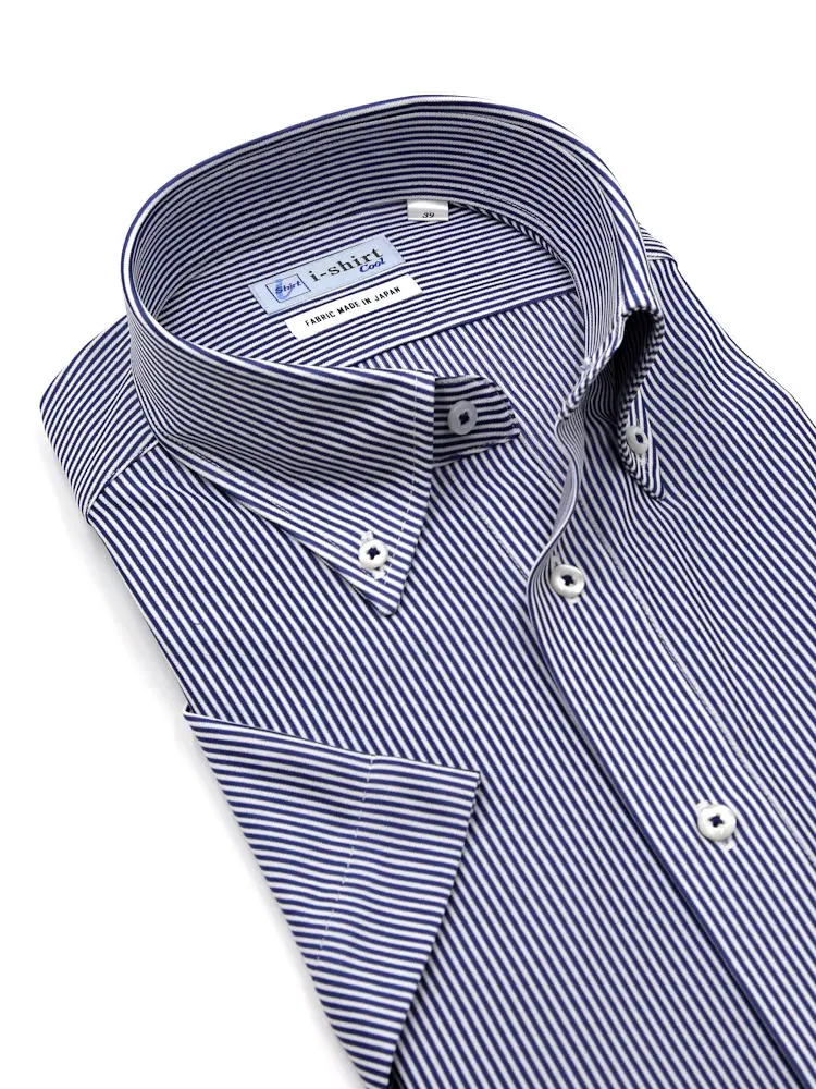 【完全ノーアイロン】半袖 アイシャツ ボタンダウン【アイスライブ生地使用】吸湿冷感 ストライプ i-shirt ワイシャツ 春夏(ネイビー)