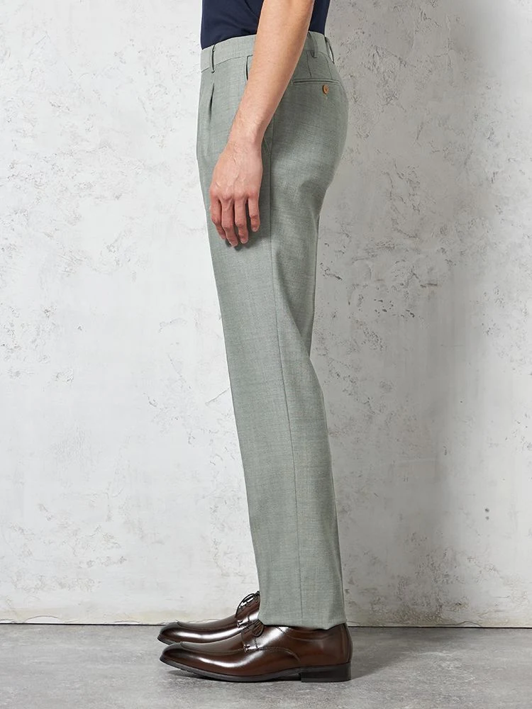 【ウール100%】パンツ ワンタック イタリア マルラーネ社製生地 ライトグリーン 無地 RUCKEN BACCHAR