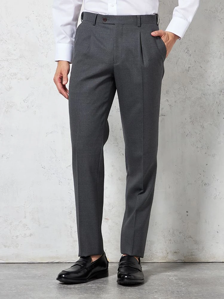 【ウール100%】パンツ ワンタック イタリア マルラーネ社製生地 グレー 無地 RUCKEN BACCHAR
