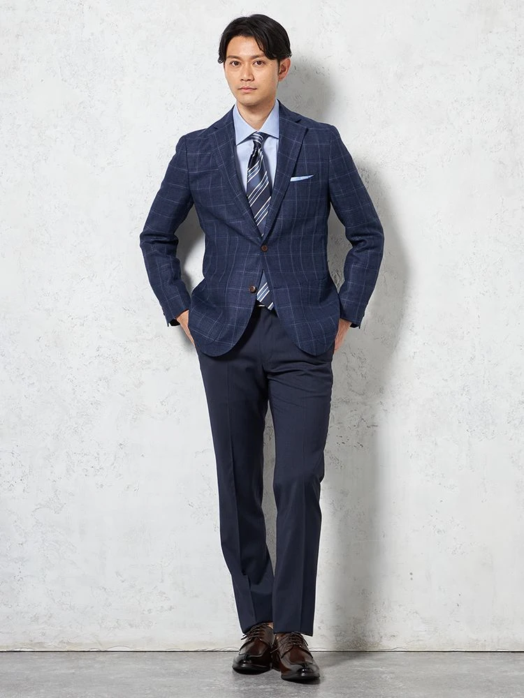 【サスティナブル素材】パンツ ノータック スリムシルエット【REDA社製生地】ネイビー 無地 STOVEL&MASON