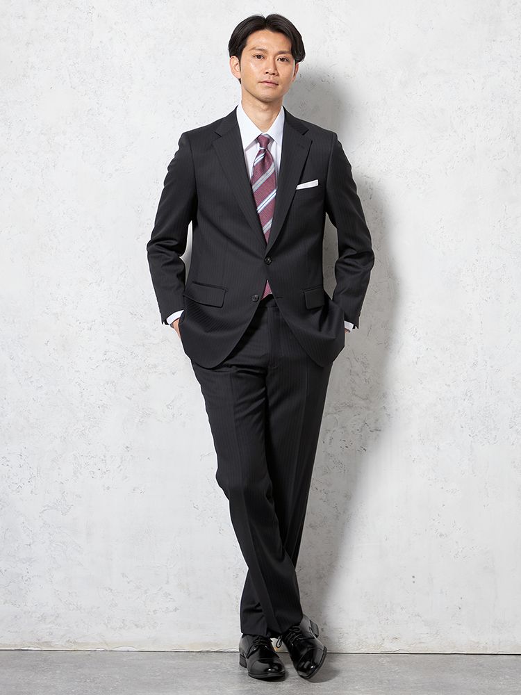【即納】【WEB限定】スーツ2つボタンシャドウストライプ上下ウォッシャブル3シーズン対応