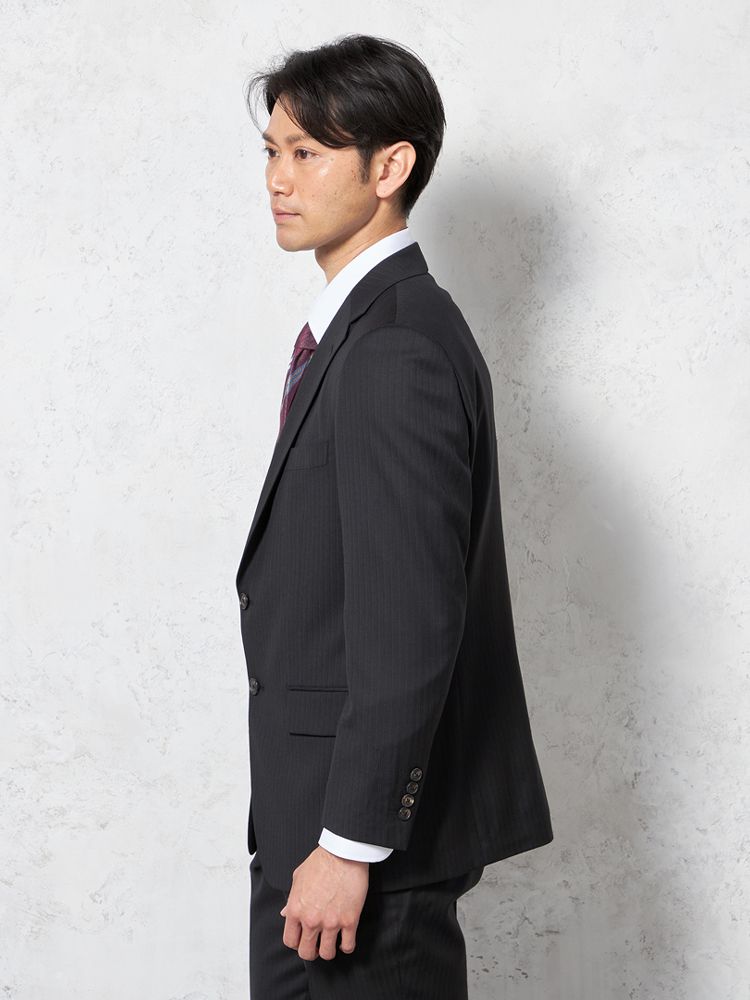 黒に限りなく近いグレーにストライプ柄を潜ませスマートな印象。