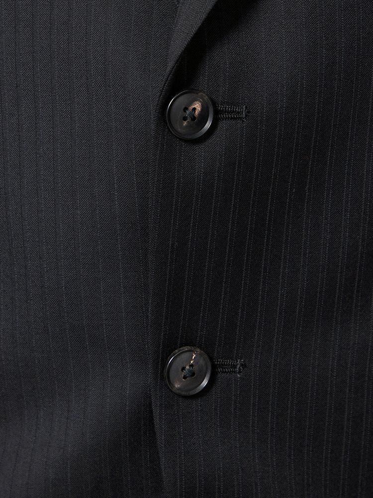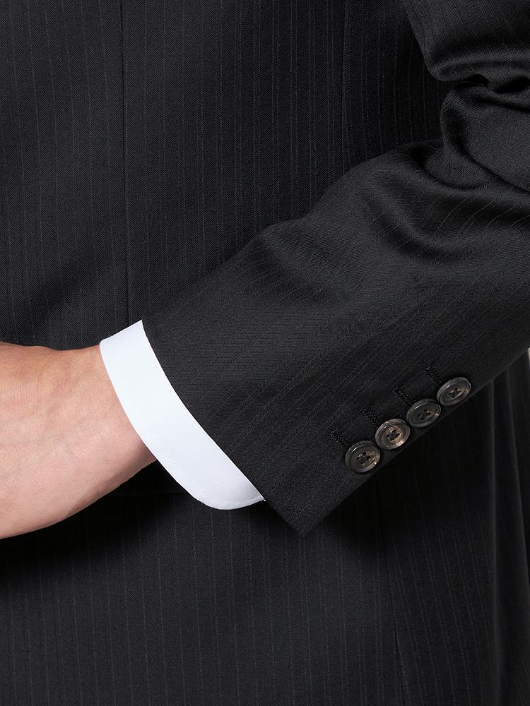 【ウール100%】スーツ 2つボタン イタリア製生地 ブラック シャドウストライプ リッケンバッカーホワイト