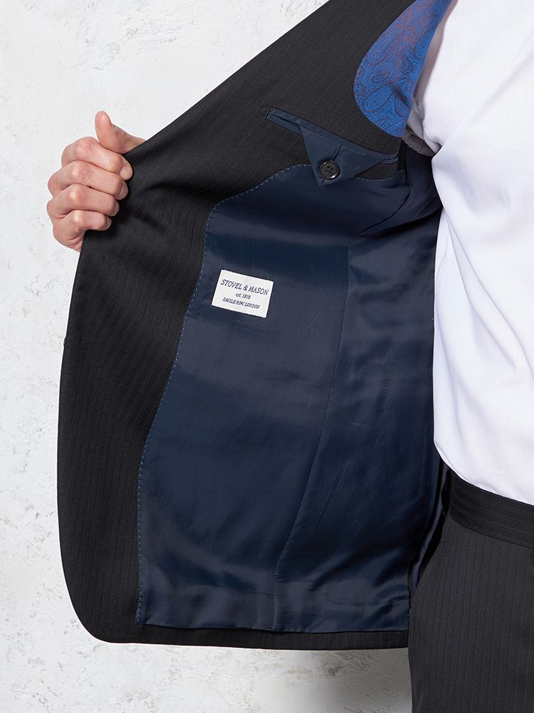【ウール100%】スーツ 2つボタン 英国製素材【JOHN FOSTER】ブラック シャドウストライプ STOVEL&MASON