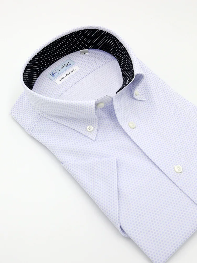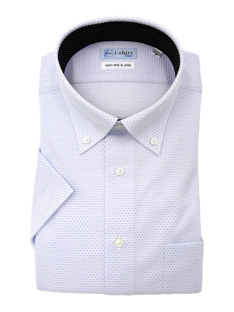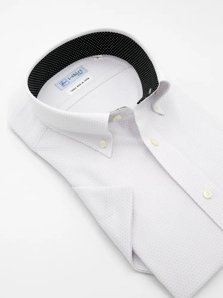 【完全ノーアイロン】半袖アイシャツボタンダウン【メタクール生地使用】吸湿冷感ツイル織柄無地ワイシャツi-shirt春夏