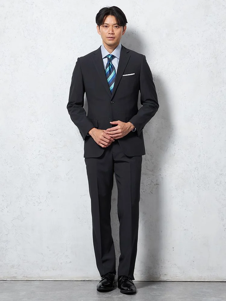 【即納】【WEB限定】スーツ2つボタンブラックシャドウストライプ上下ウォッシャブル3シーズン対応