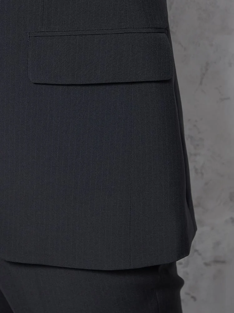 切り込みが1本のセンターベントデザインです。細身でスッキリとしたシルエットが特徴で、快適な着心地を提供します