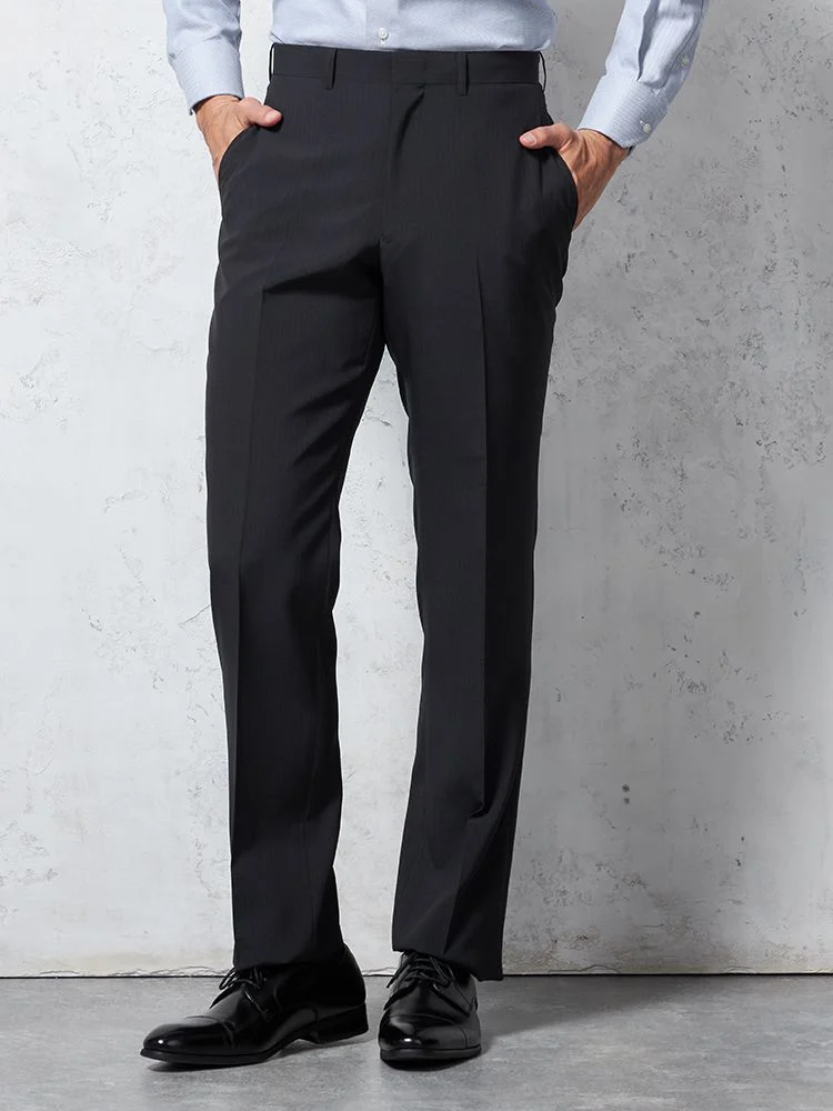 シングルボタンがすっきりとした王道ジャケットと程よく細身のシルエットが綺麗なパンツのスーツ。