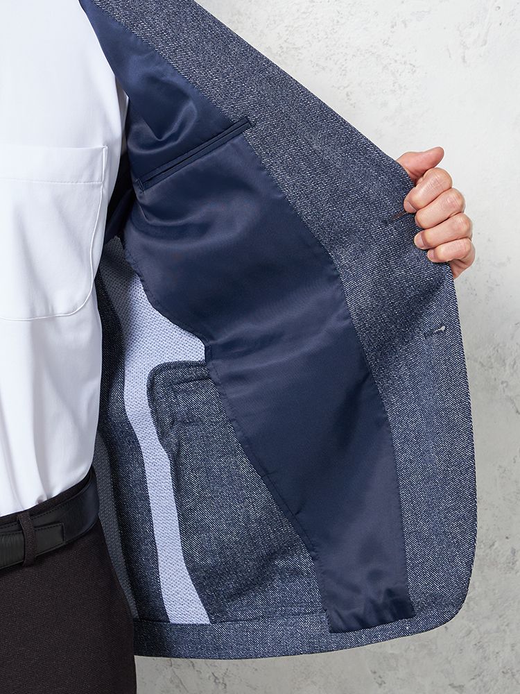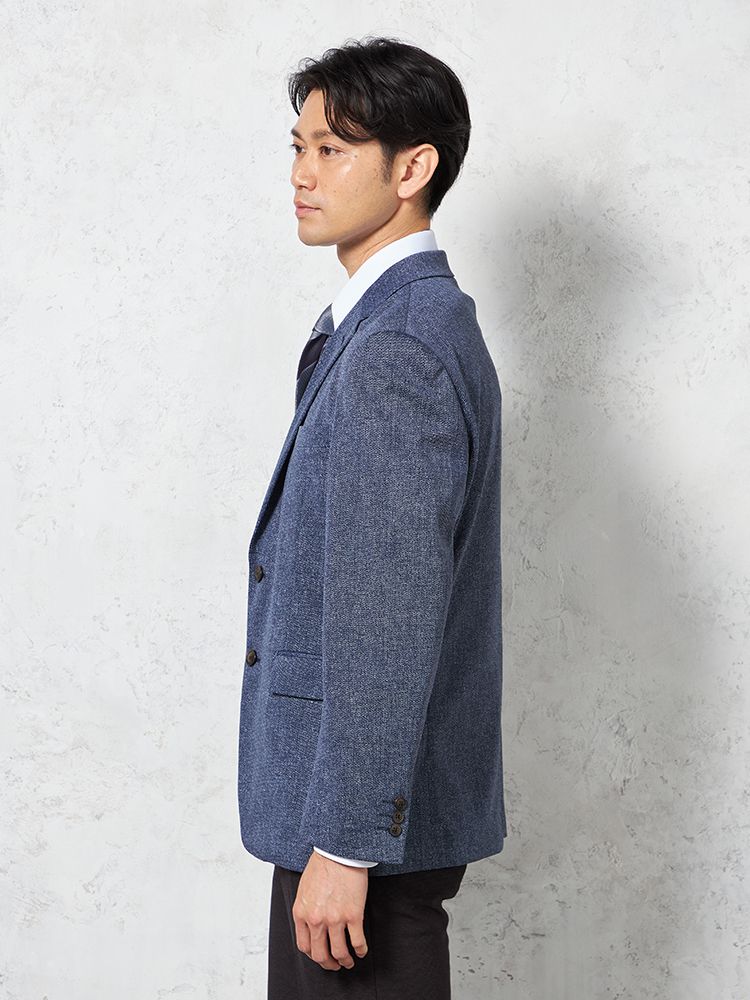 【i-Jacket-アイジャケット-】トリコットメッシュプリントジャケット 2つボタン ストレッチ 高通気 軽量 ブルー 無地 春夏