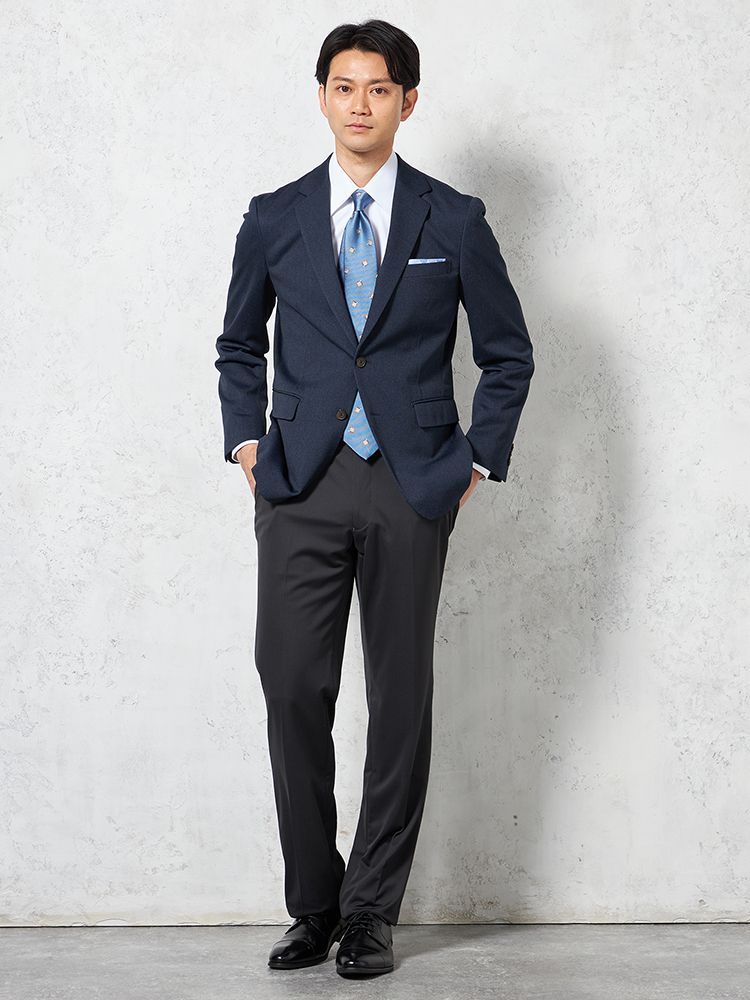 2つボタンのデザインで、クラシックなスタイルを演出。落ち着きと品のあるアイテムです。