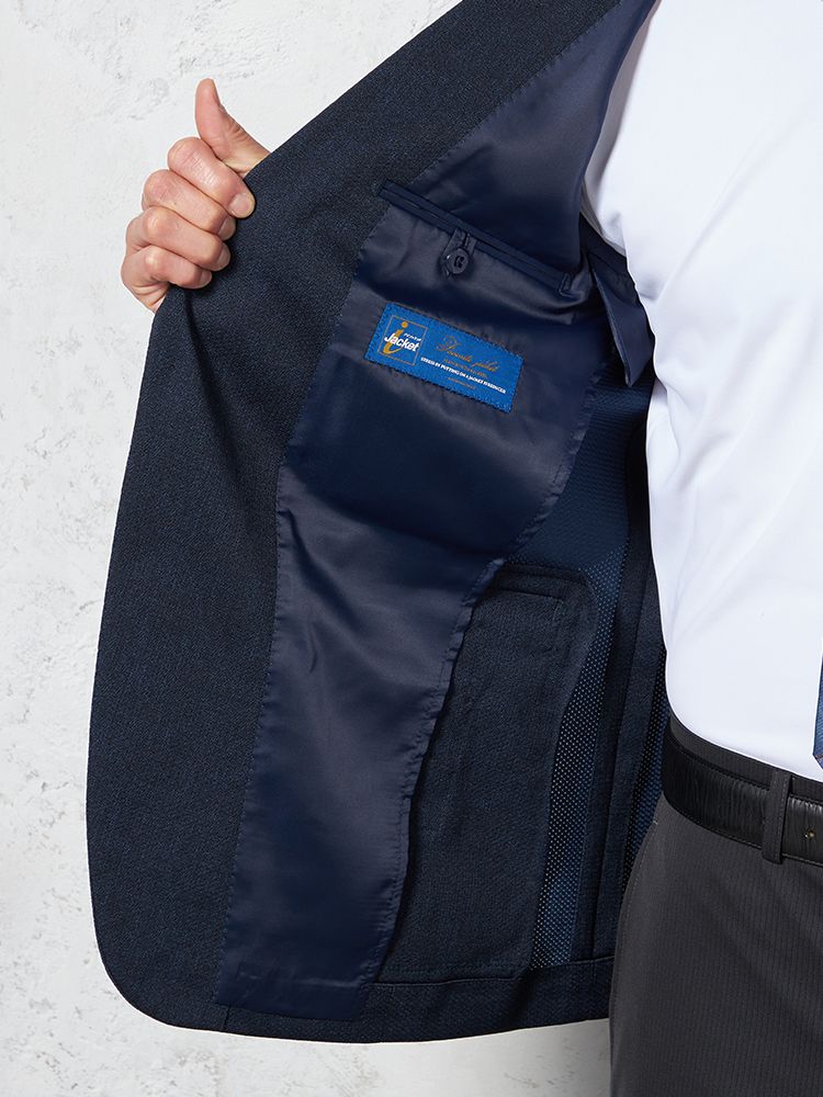 • 【i-Jacket-アイジャケット-】トリコットメッシュプリントジャケット 2つボタン ストレッチ 高通気 軽量 ネイビー 無地 春夏 1278774356