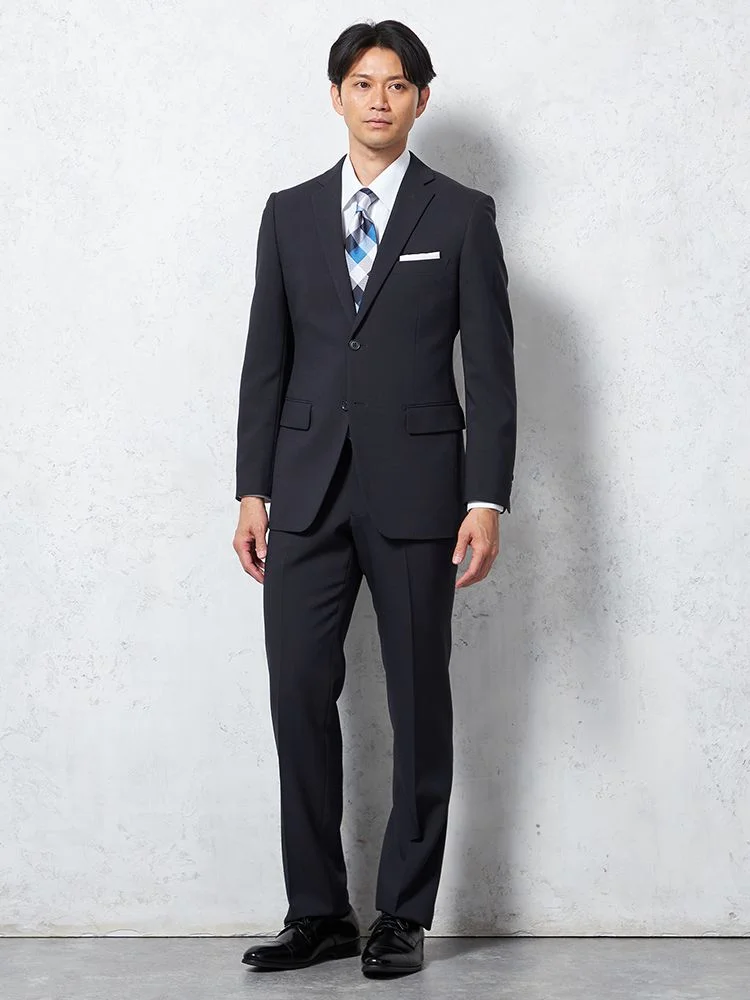 【即納】スーツ2つボタン【WEB限定】4WAYストレッチシャドウチェックネイビー