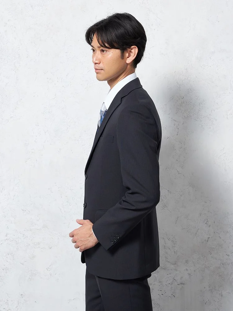 切り込みが1本のセンターベントデザインです。細身でスッキリとしたシルエットが特徴で、快適な着心地を提供します