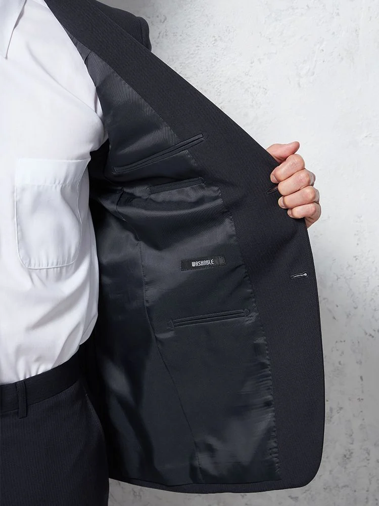【即納】【WEB限定】スーツ2つボタンブラックシャドウストライプ上下ウォッシャブル3シーズン対応