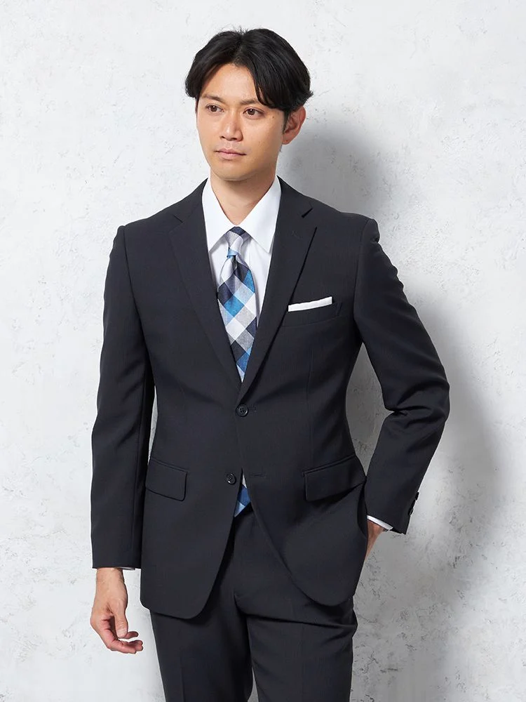 【即納】スーツ 2つボタン【WEB限定】4WAYストレッチ 織柄 チャコールグレー 通年