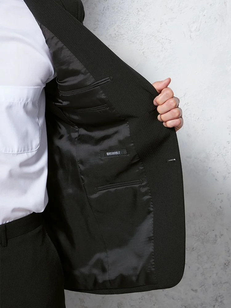 【即納】【WEB限定】スーツ2つボタンブラックシャドウストライプ上下ウォッシャブル3シーズン対応