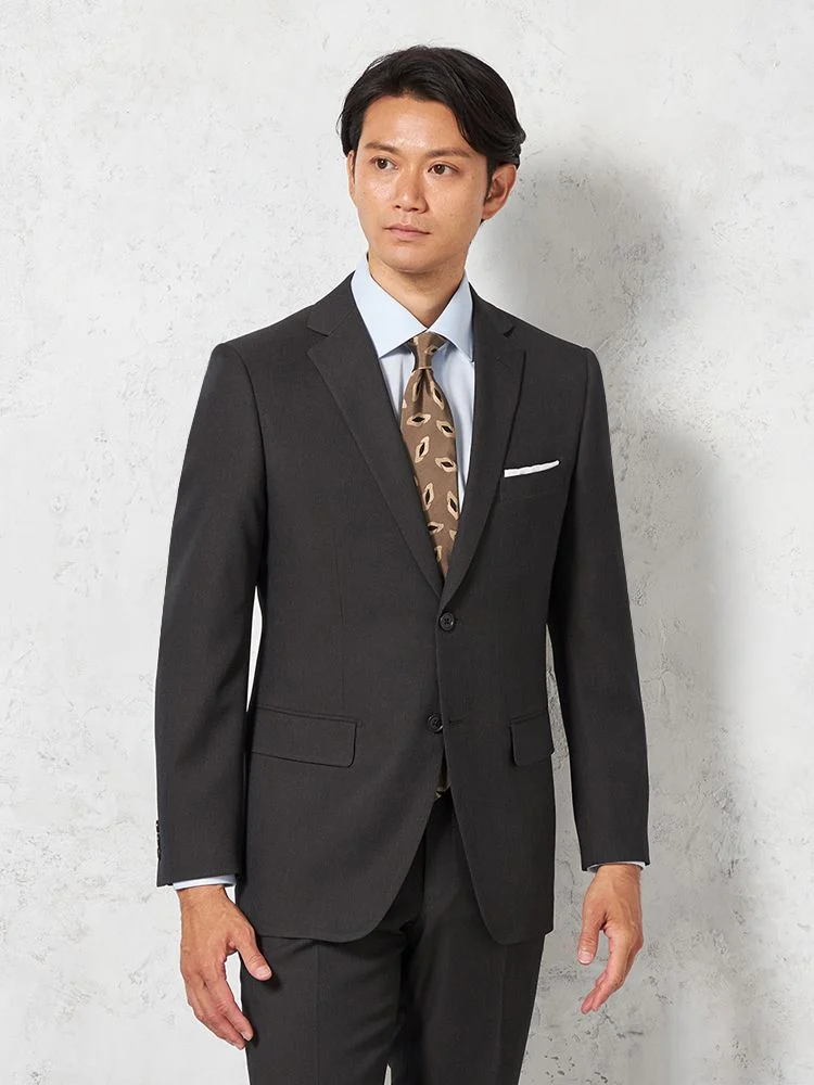 【即納】スーツ 2つボタン【WEB限定】4WAYストレッチ 織柄 チャコールグレー 通年