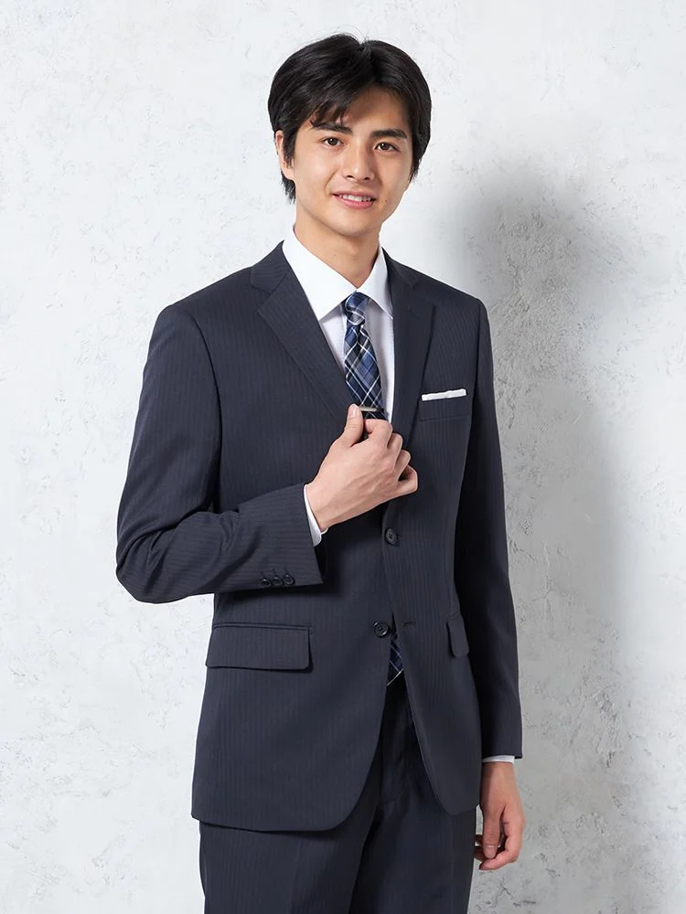 【即納】スーツ2つボタン【WEB限定】4WAYストレッチシャドウストライプネイビー通年