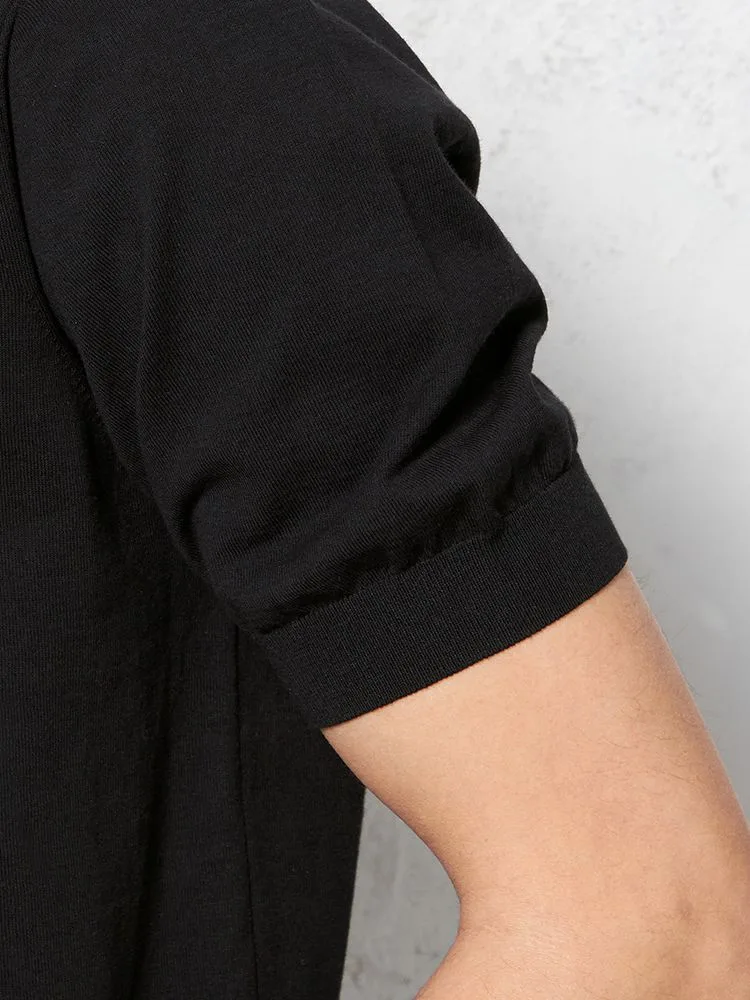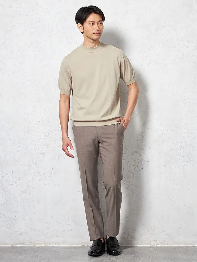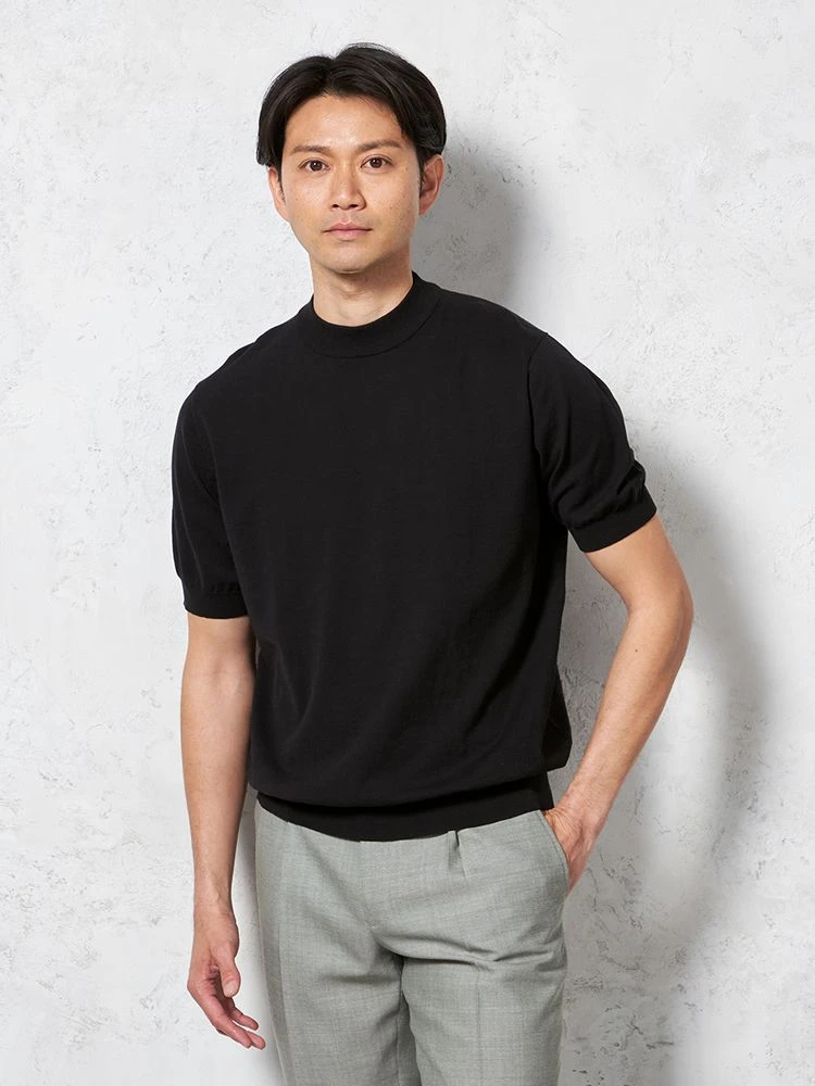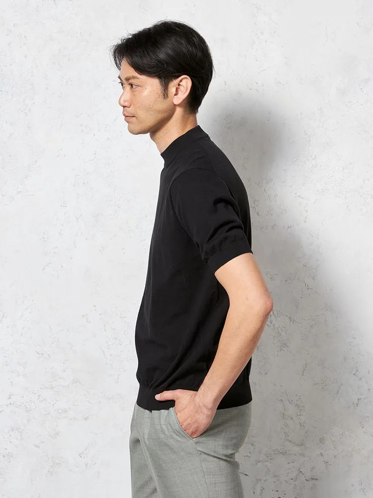 【綿100%】半袖 モックネック ニットTシャツ カジュアルインナー 無地 リッケンバッカー 春夏(L.グレー)
