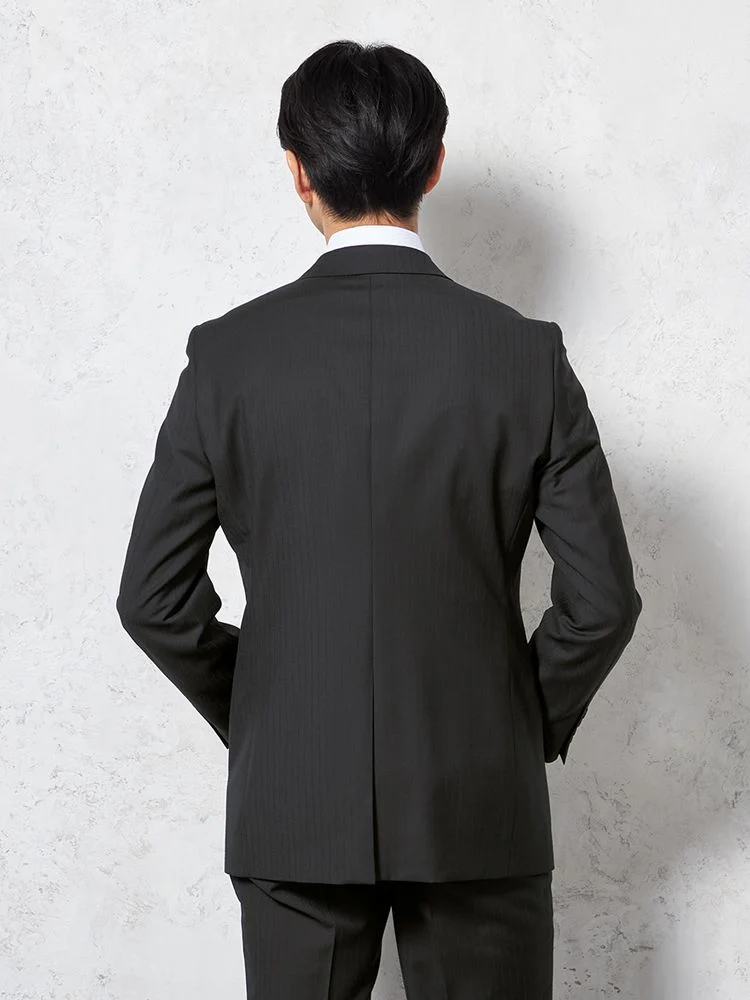 切り込みが1本のセンターベントデザインです。細身でスッキリとしたシルエットが特徴で、快適な着心地を提供します