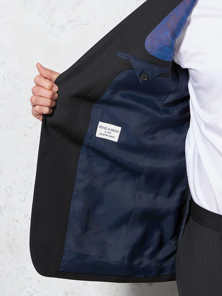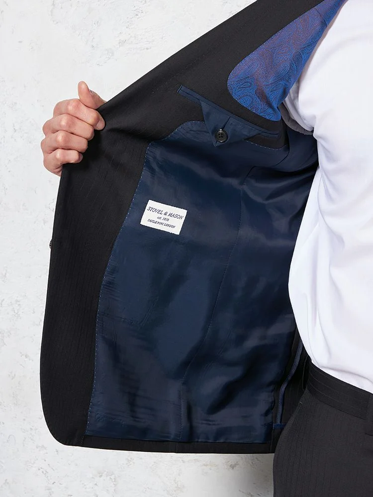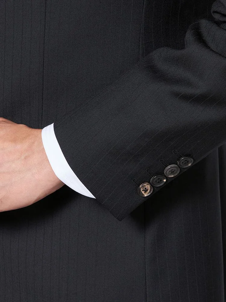 【ウール100%】スーツ 2つボタン 英国製素材【JOHN FOSTER】ブラック シャドウストライプ STOVEL&MASON