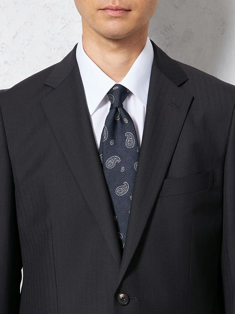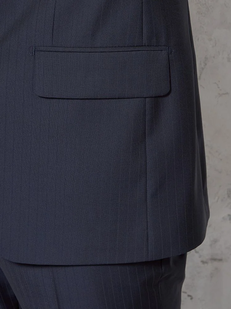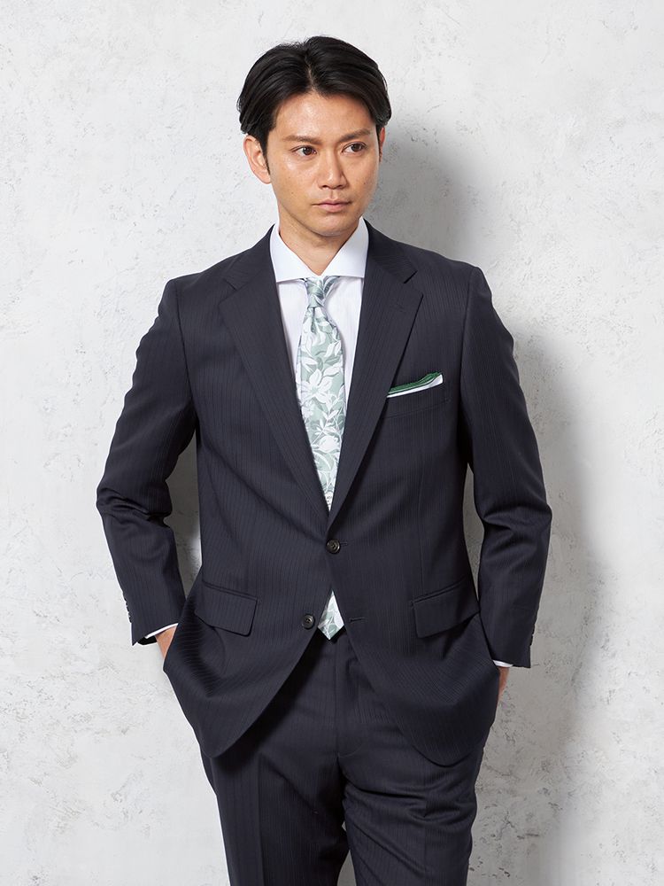 【ウール100%】スーツ2つボタン尾州生地ネイビーシャドウストライプSTOVEL&MASON