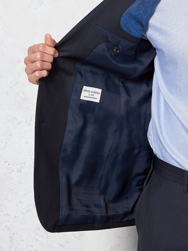 【ウール100%】スーツ 2つボタン 英国製素材【JOHN FOSTER】ネイビー シャドウストライプ STOVEL&MASON