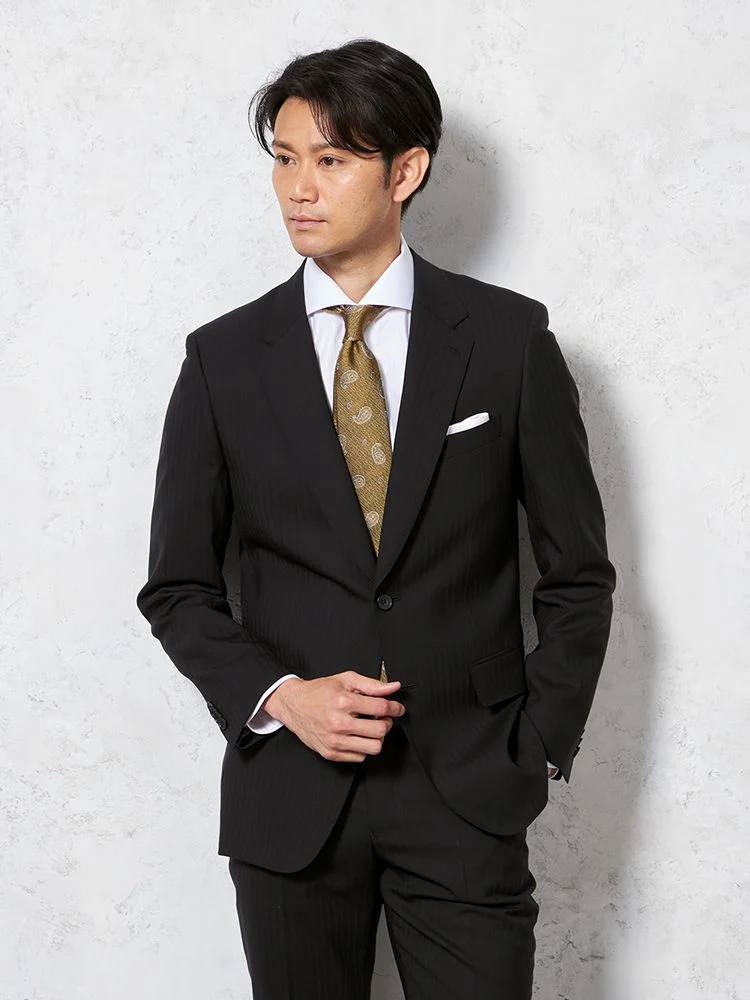 【即納】【WEB限定】スーツ2つボタンブラックシャドウストライプ上下ウォッシャブル3シーズン対応