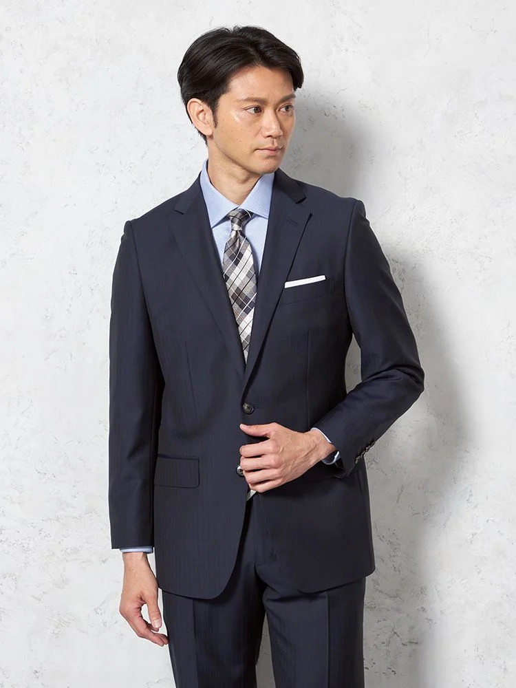 【即納】【WEB限定】スーツ2つボタンネイビーシャドウストライプ上下ウォッシャブル3シーズン対応