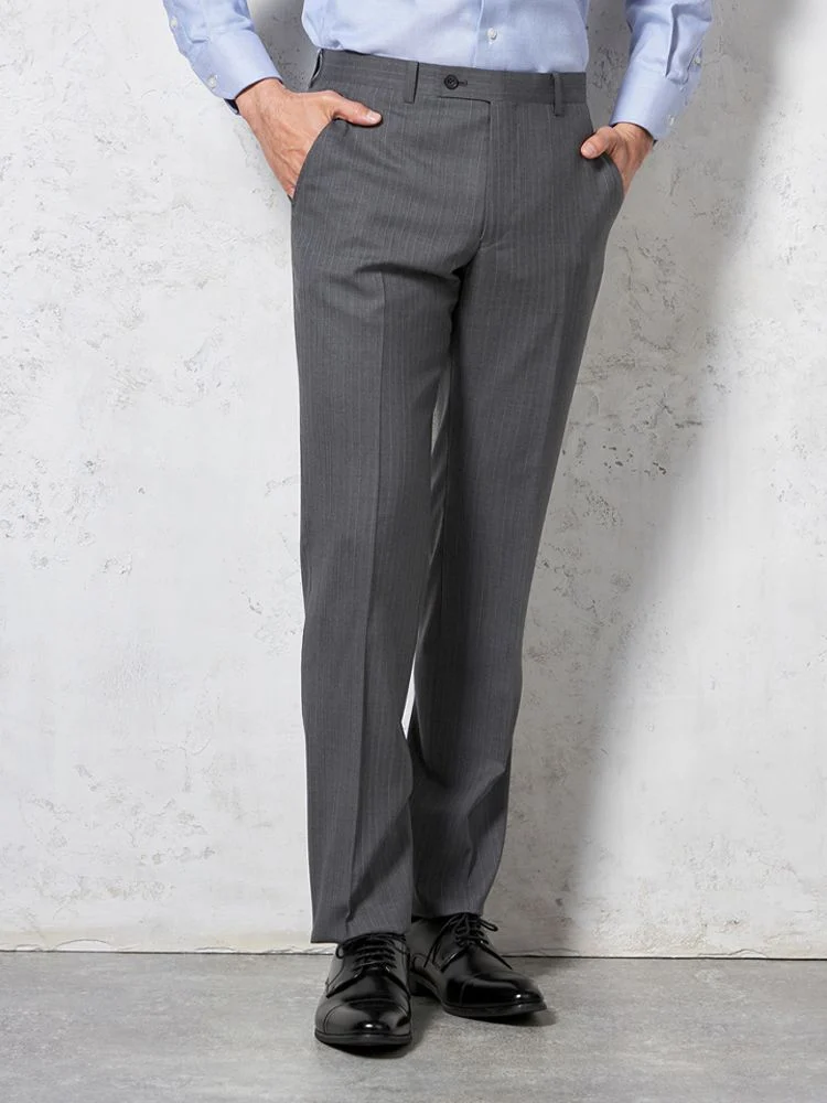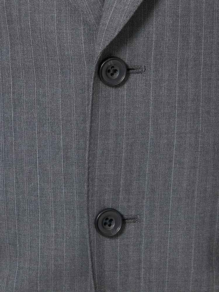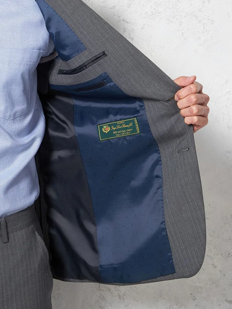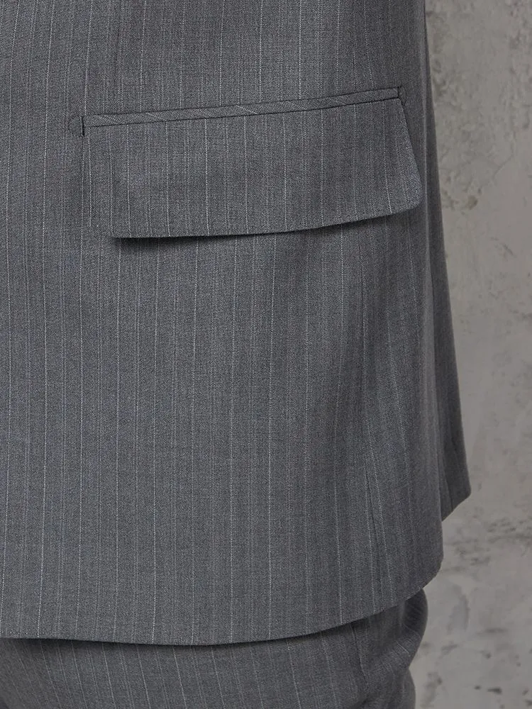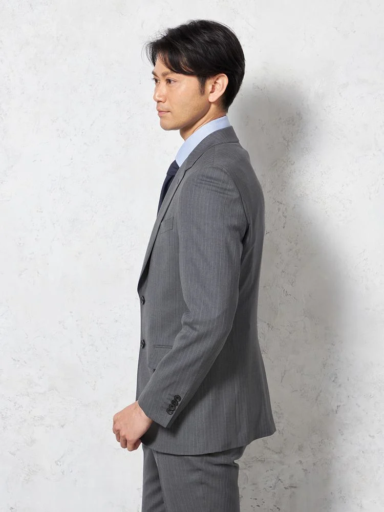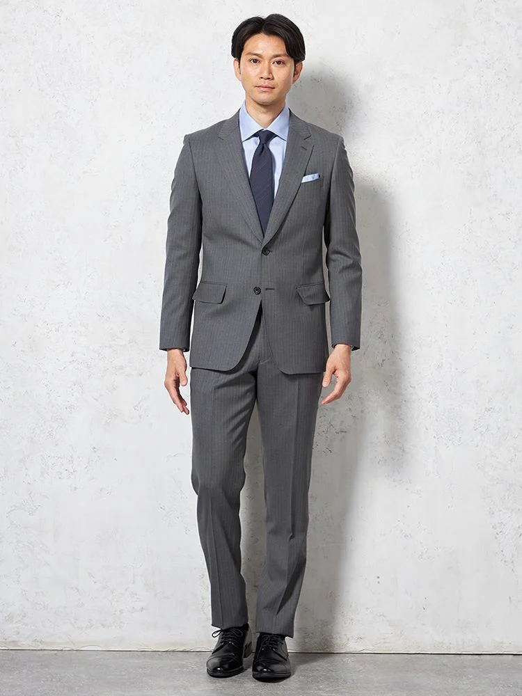 【ウール100%】スーツ 2つボタン イタリア製生地 グレー ストライプ リッケンバッカーホワイト