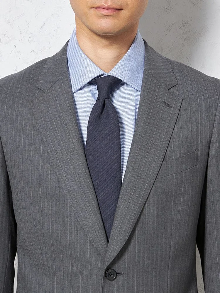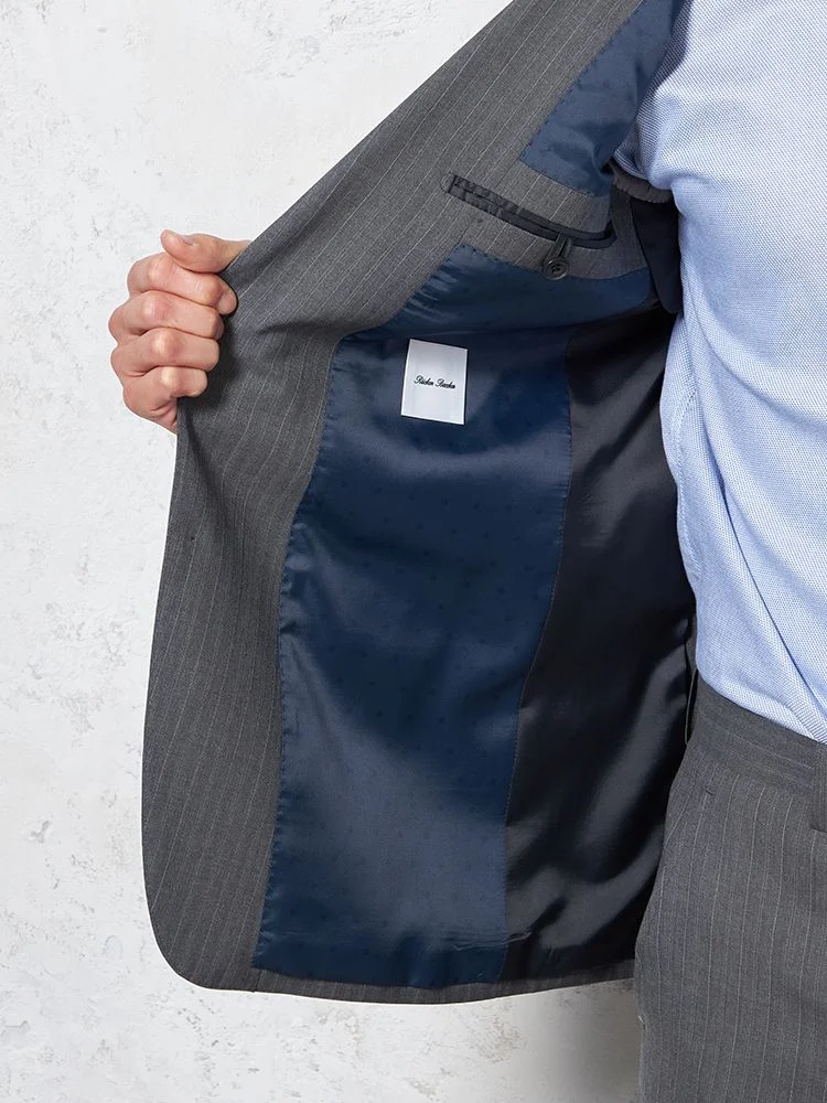 イタリア製ウール100%素材を使用した、ストライプ柄スーツ。