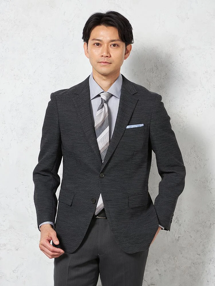 切り込みが1本のセンターベントデザインです。細身でスッキリとしたシルエットが特徴で、快適な着心地を提供します