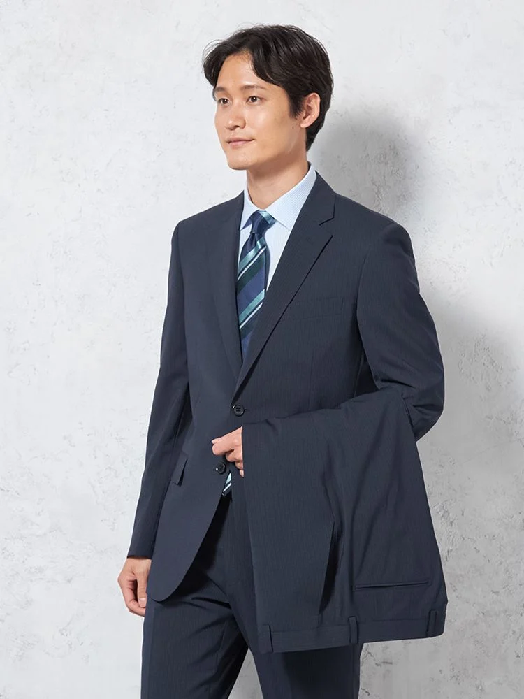 【即納】【WEB限定】スーツ2つボタンネイビーシャドウストライプ上下ウォッシャブル3シーズン対応