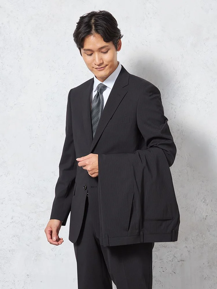 【即納】【WEB限定】スーツ2つボタンブラックシャドウストライプ上下ウォッシャブル3シーズン対応