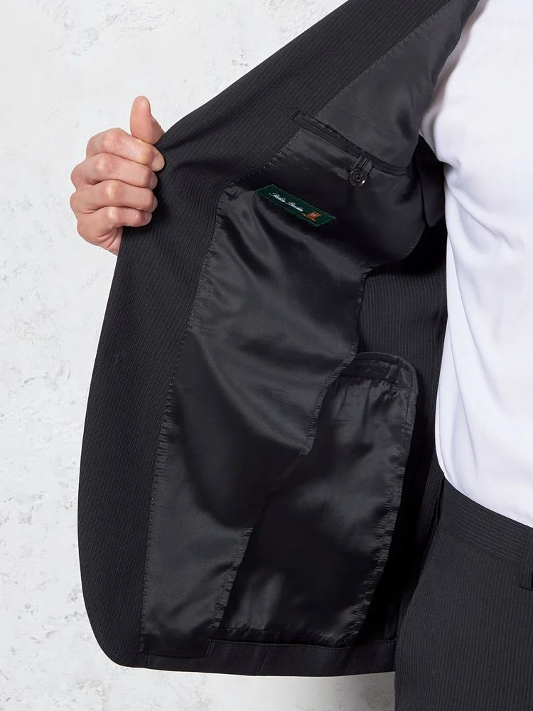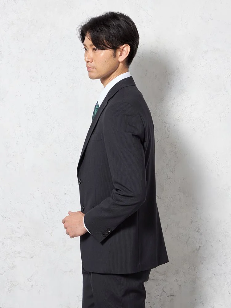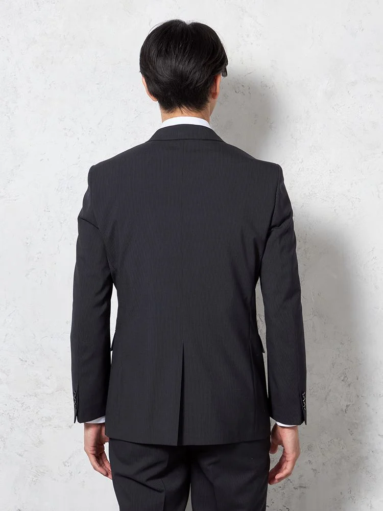 【即納】【WEB限定】スーツ2つボタンブラックシャドウストライプ上下ウォッシャブル3シーズン対応