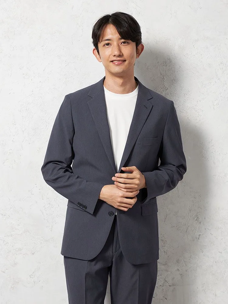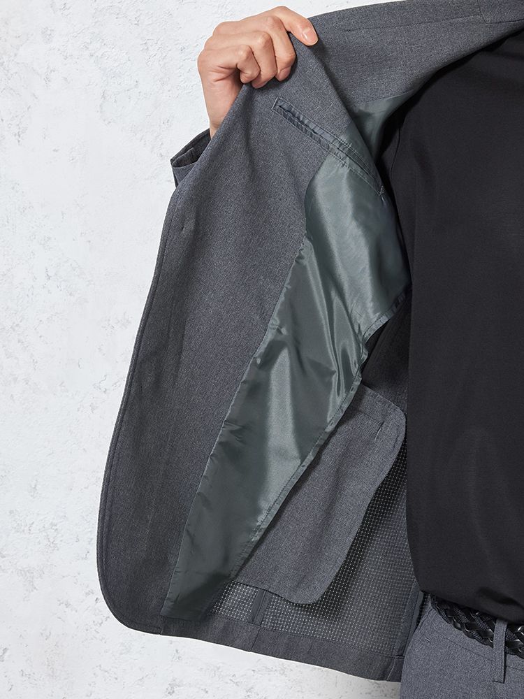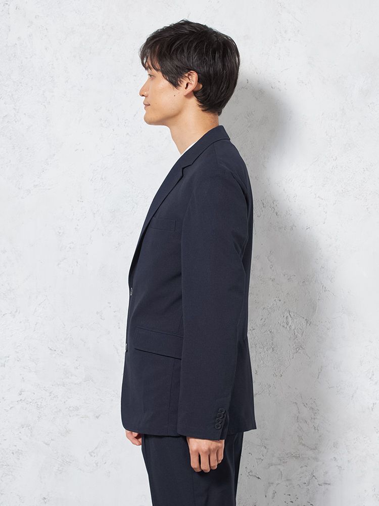 東レ(株)の高通気快適素材「Dot Air-ドットエアー-」を使用した、カジュアルテーラードジャケット。