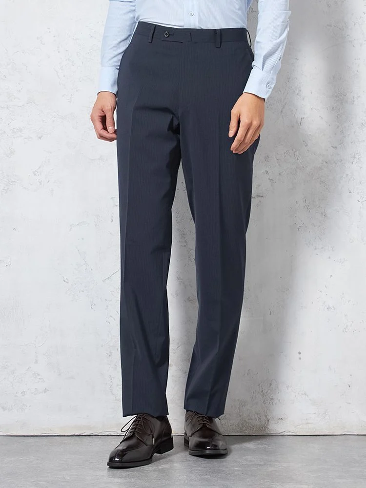 パンツの腰回りに生地の折り込みがなく、スッキリとしたシルエットを実現します。シンプルで洗練された印象を与え、すっきりとした着こなしが可能です。