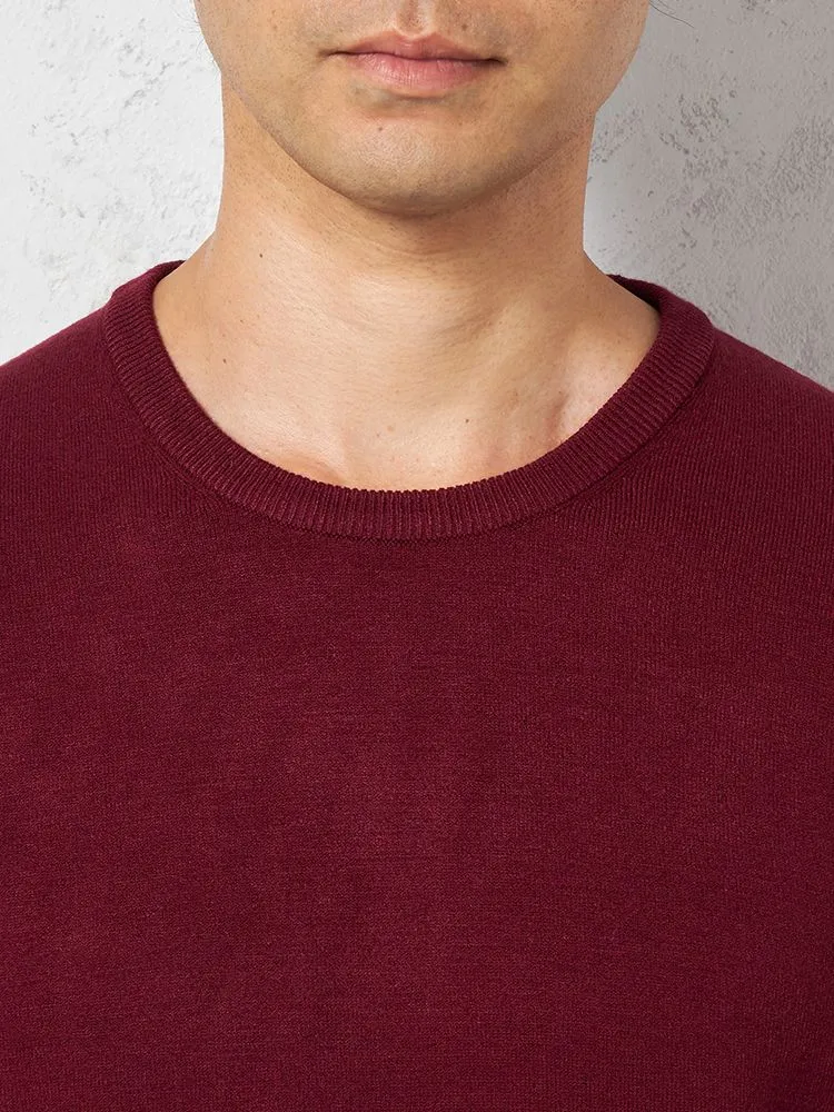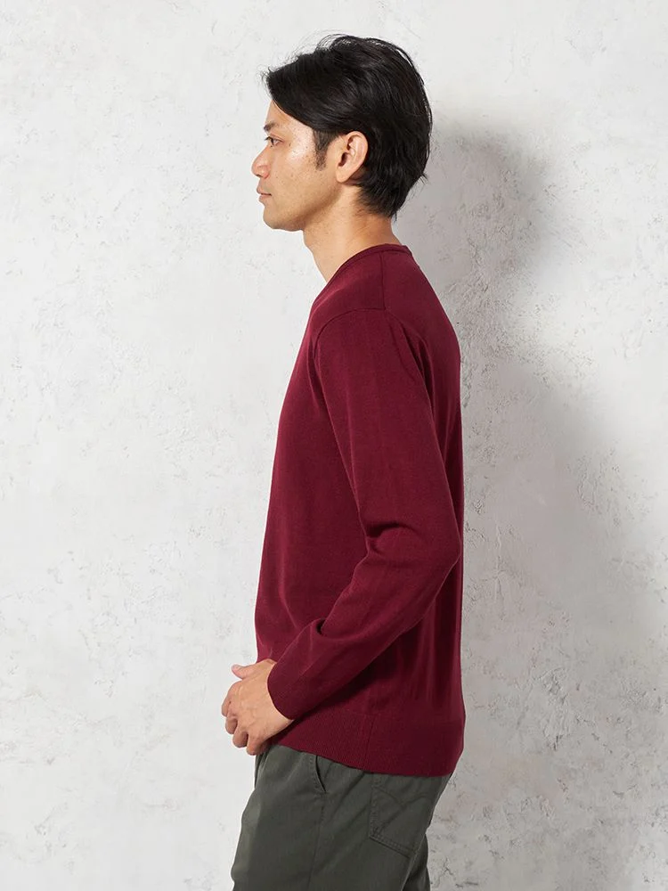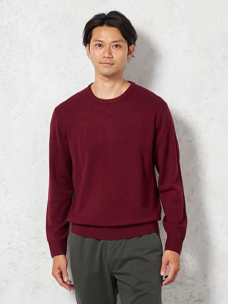 【吸湿発熱】長袖ニット Gヒート クルーネック カジュアルインナー 無地 リッケンバッカー 秋冬(ワイン)