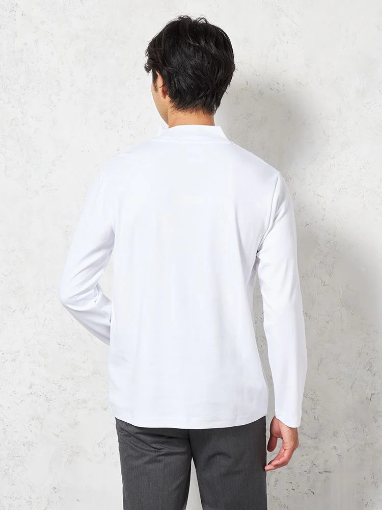 【抗菌防臭】シルケットスムース モックネックTシャツ カジュアルインナー 無地 gim 通年(ホワイト)