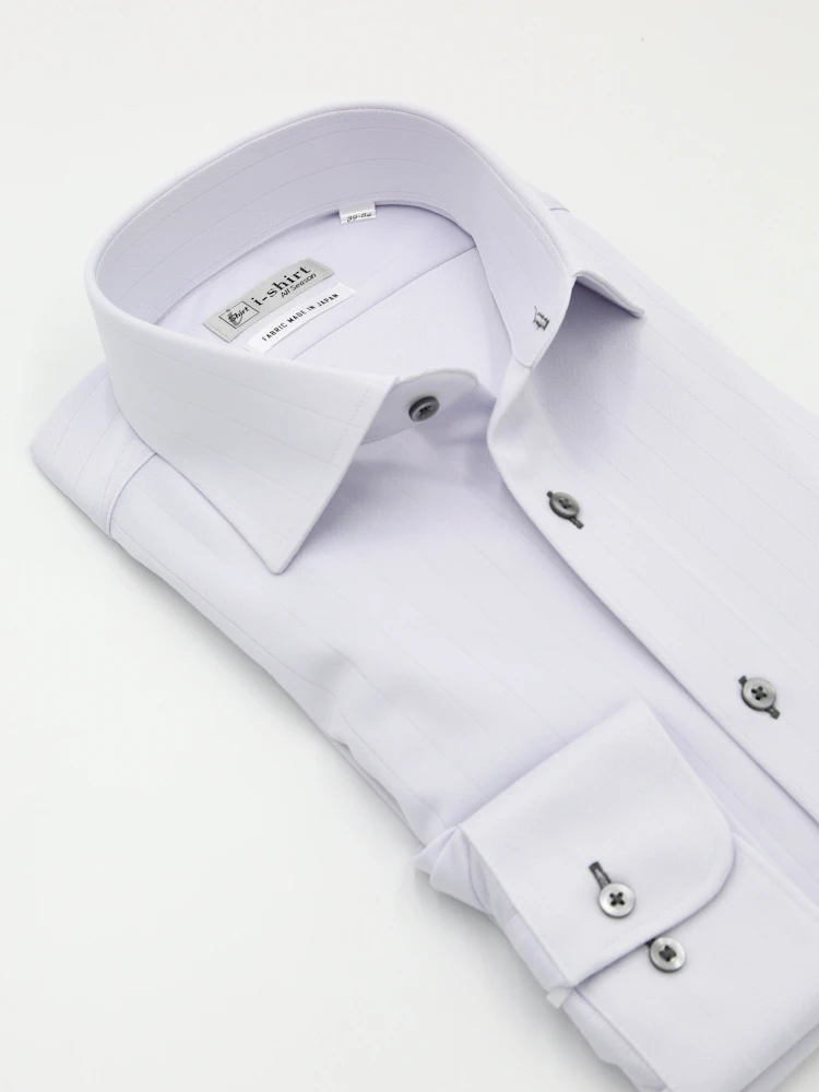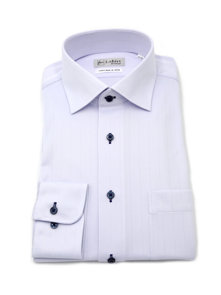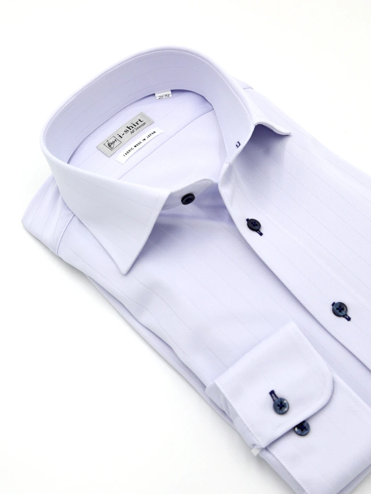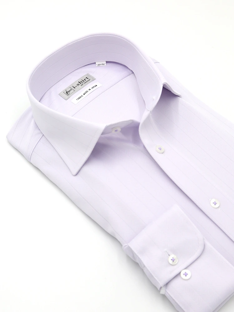 【完全ノーアイロン】長袖 アイシャツ セミワイド 防汚加工 ストレッチ ツイル 織柄無地 ワイシャツ i-shirt 通年(ラベンダー)