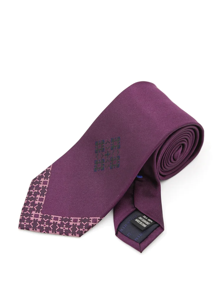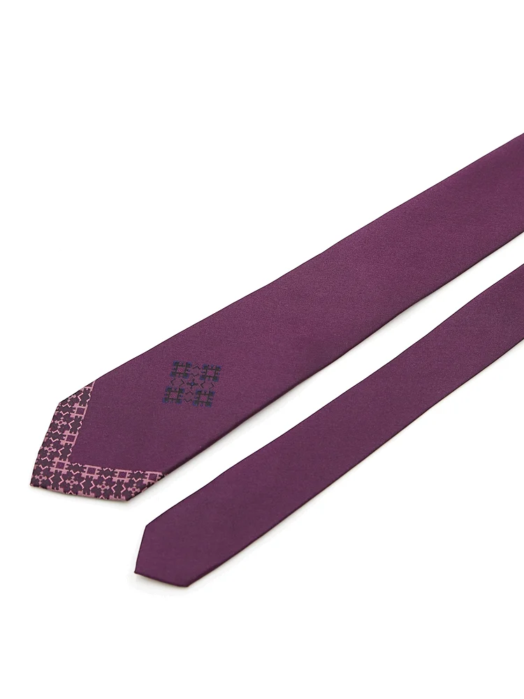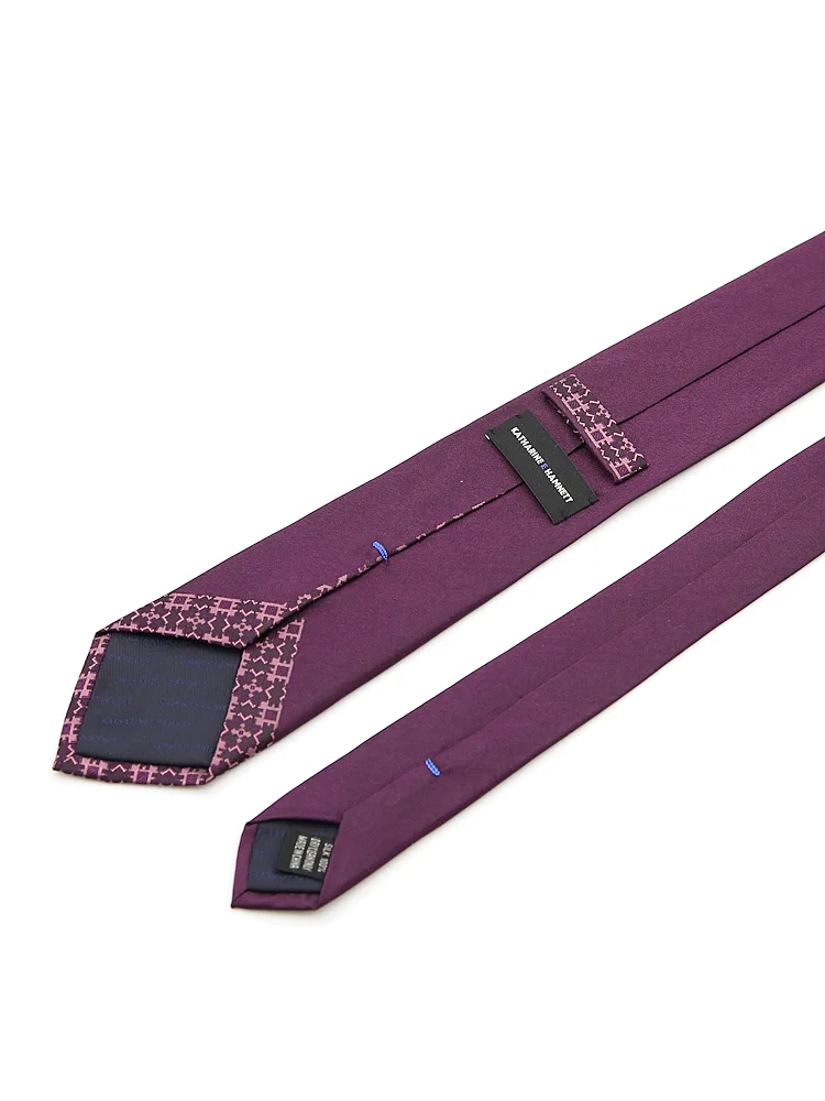 【KATHARINE E HAMNETT-キャサリン・イー・ハムネット-】ネクタイ レギュラー シルク100% パネルデザイン 秋冬(ワイン)