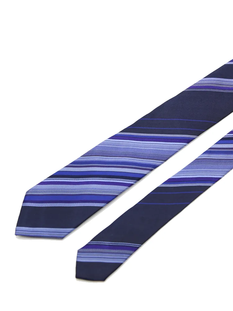 【シルク混】ネクタイレギュラーリクルートタイネイビーストライプnero通年