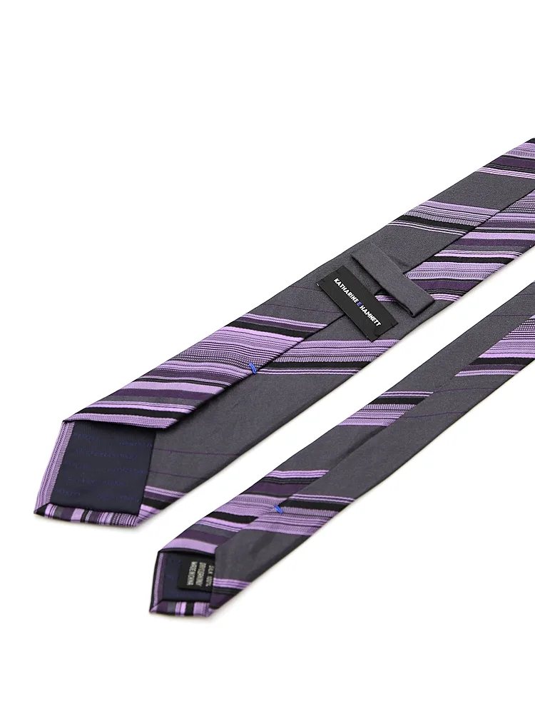 【KATHARINE E HAMNETT-キャサリン・イー・ハムネット-】ネクタイ レギュラー シルク100% サテンストライプ